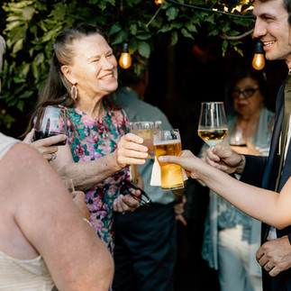 Upon their return to the rest of the wedding, Sarah and Geoff asked their closest friends for speeches on the patio and offered guests fresh champagne - a welcomed treat on a warm day.